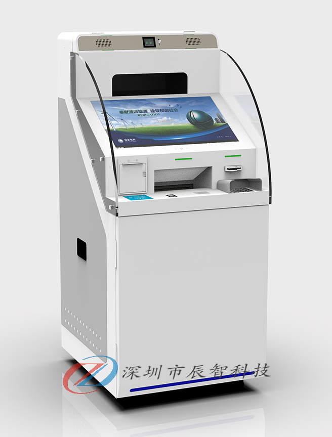 - 產品簡介: 辰智政務多功能自助機通過對第二代身份證的識別,支持開戶發卡實現在自助設備上客戶現場辦理各種業務,打印相關文件,同時該項設備還繼承了傳統銀行自助設備的功能,如查詢余額、查詢明細、轉賬、修改密碼、各種中間業務等。